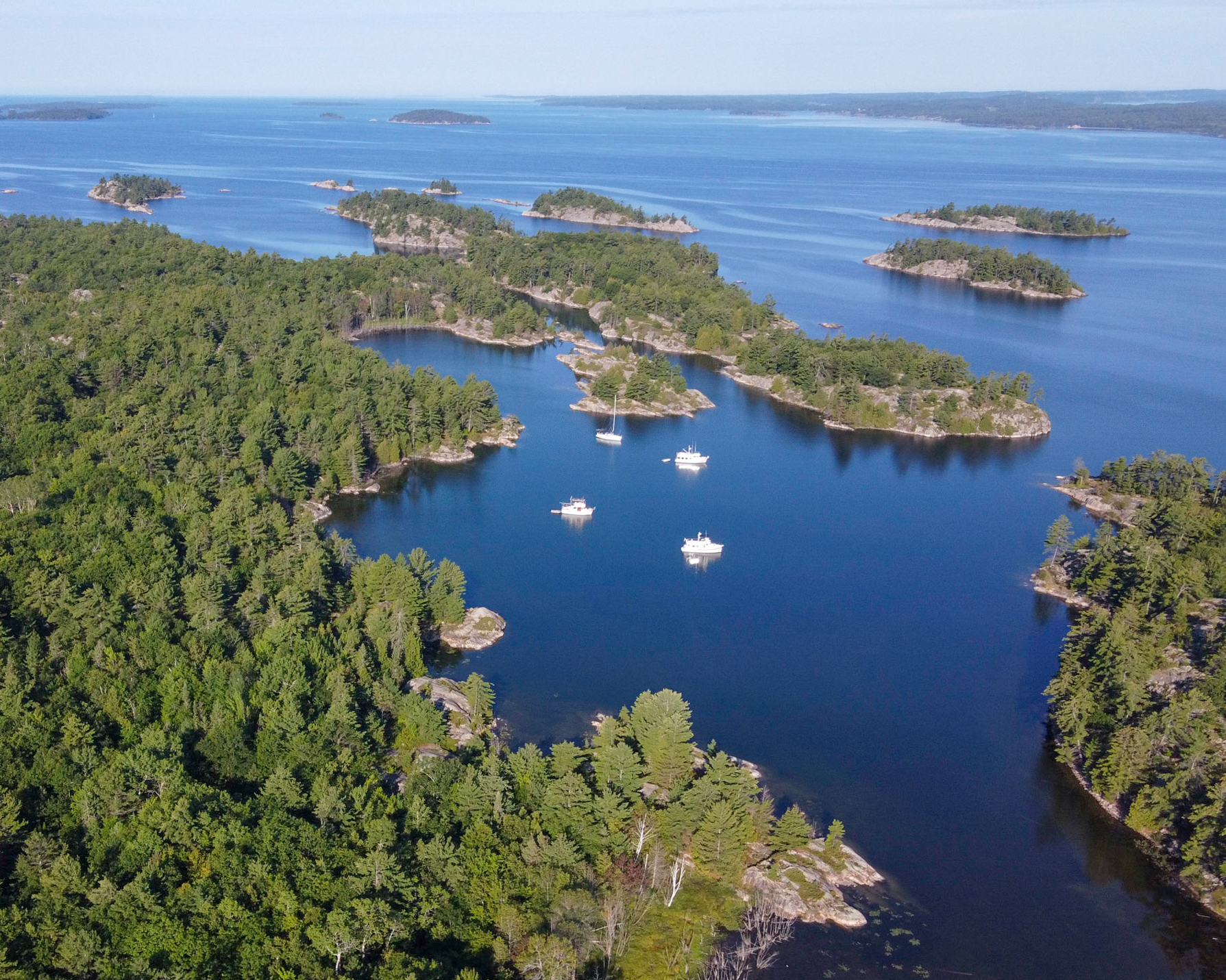 Georgian Bay’s inlets, coves, and islands make this region some of the best freshwater cruising in the world. Its striking geological features date back to the last ice age when glaciers exposed granite bedrock known as the Canadian Shield. It’s also the traditional domain of the Anishinaabeg First Nations peoples and Huron-Petun (Wyandot).