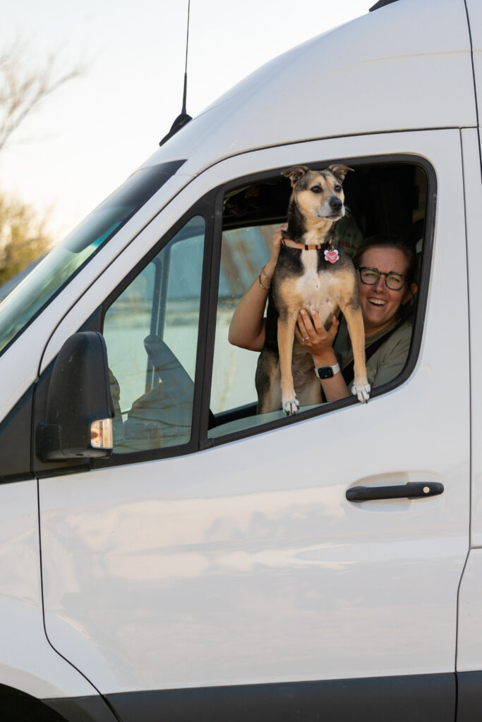 If you’re traveling with a non-service animal, keep in mind that pets are not permitted on the overlooks or trails of Canyonlands National Park. They are allowed on campgrounds, front-country roads, parking lots, and picnic areas. For more information on pets in Canyonlands National Park, click here. We were able to keep Ollie in our van as we can control the temperature from our phones. If you need a kennel, here’s a list of several in Moab, Utah.