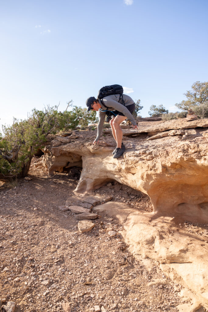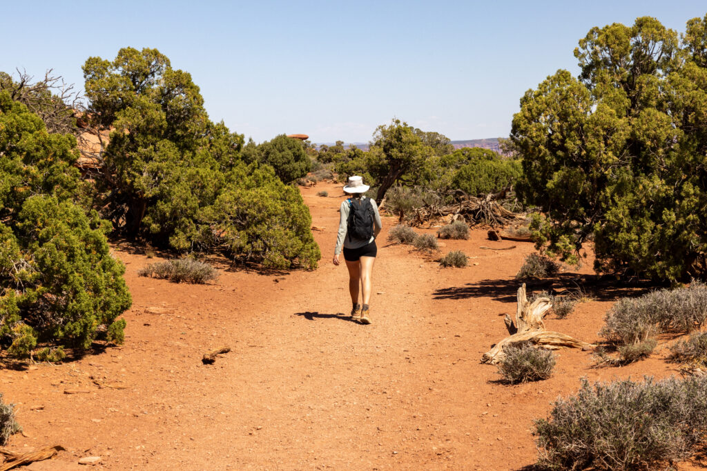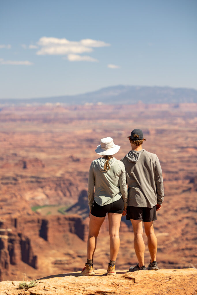 Some of the biggest essentials while hiking in Canyonlands National Park are ample hydration and sun protection. Our favorite ways to hit both of these are by carrying water bladders with our favorite electrolytes instead of tons of heavy water bottles and wearing a mix of sunscreen, sun shirts, and wide-brimmed hats. In this section, we outline everything else that came in handy for us.