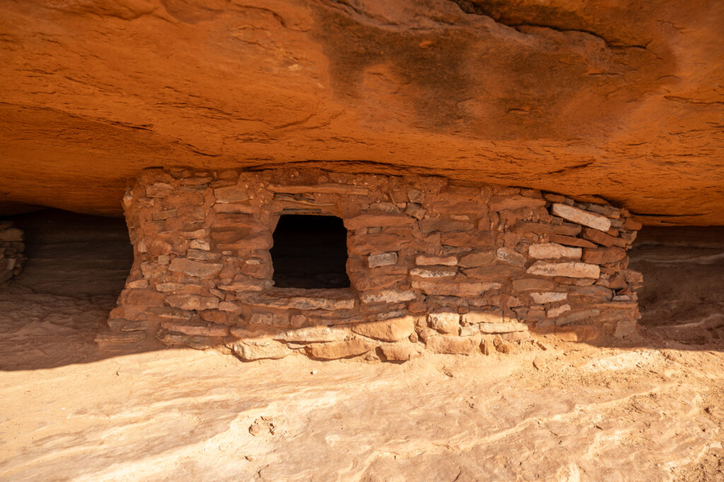 After lunch and a siesta, it’s time to hit an intermediate-level trail. Head over to the trailhead of Aztec Butte Trail, a 1-hour out-and-back hike that takes you to two buttes, each with unique archeological spots. The first stop on the trail is The Granary, a stone structure that scientists and descendants of these Indigenous peoples believe was used to store food.