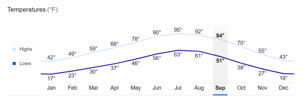 - Spring & Fall in Canyonlands — The shoulder seasons of spring and fall are the most temperate, dry, and, with that, popular seasons for Canyonlands. March to May and mid-September to October experience pleasant daytime highs averaging no more than 60ºF to 80ºF.