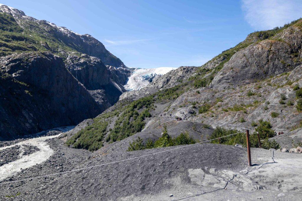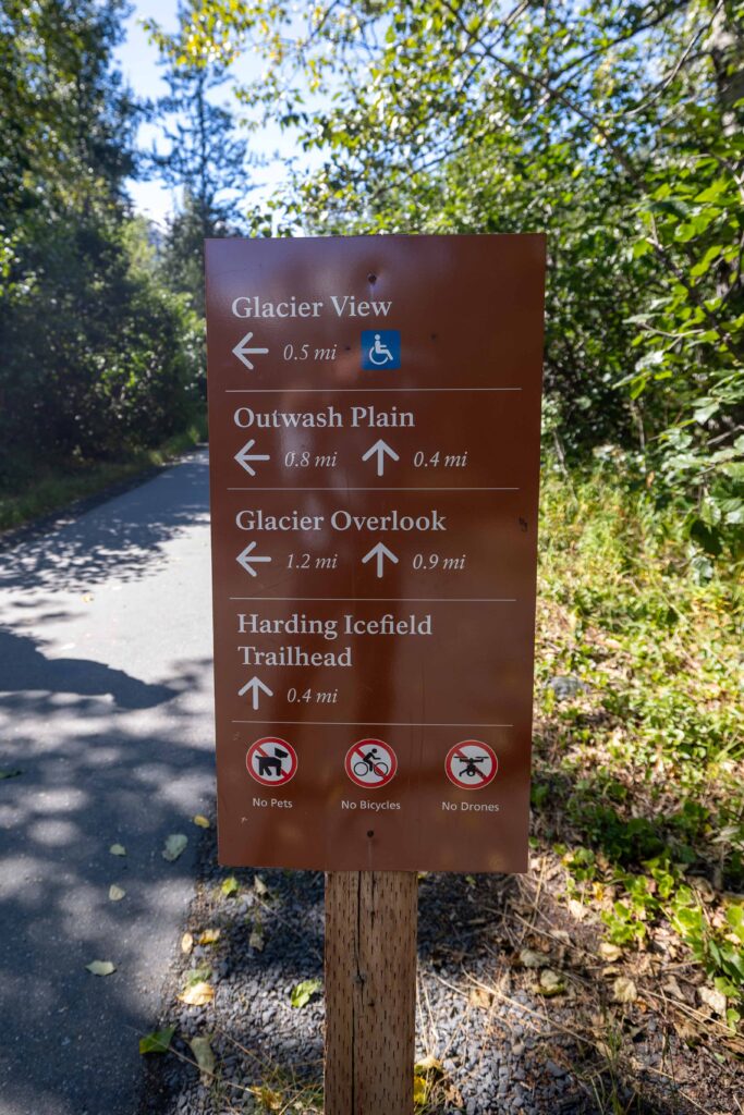 As you drive to the Exit Glacier Nature Center, you’ll see small signs along the side of the road indicating the year that Exit Glacier was there. The trail then brings you even closer to Exit Glacier, bringing you along its retreating path—a reminder of climate change.