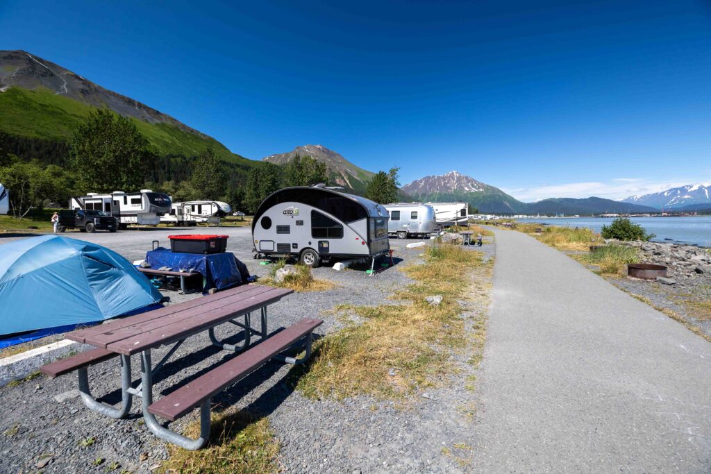 - Camping near Seward, Alaska—Just 10 minutes away from Seward are a handful of affordable campgrounds and RV Parks such as Howling Wolf Resort, Nash Bayfront Campground, and RipTide RV Resort. They are a great alternative when downtown Seward is full, you prefer to escape the crowds, or if you’re looking for more amenities than a shorefront spot.
