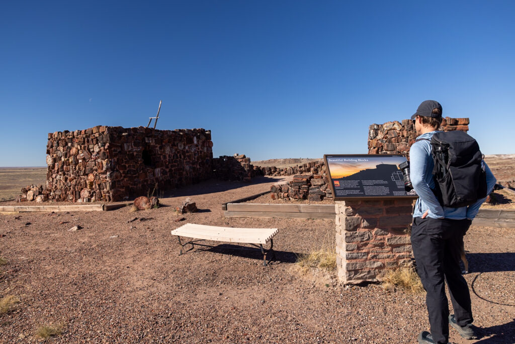 Petrified Forest National Park has three visitor centers—Painted Desert Community Complex, Painted Desert Inn National Historic Landmark, and the Rainbow Forest Museum. The first two are located right by each other by the northern entrance to the park, whereas the Rainbow Forest Museum serves the southern entrance to the park. Below, we’ve outlined what you can expect from each!
