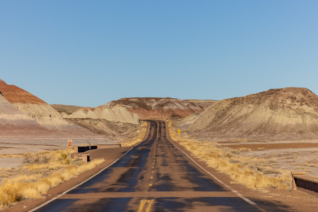 🚴🏼 Prefer biking? Bikes and e-bikes are also permitted in Petrified Forest National Park. You can ride this scenic drive on your bike, as well as a few other paved roads that branch off from it. Find the full cycling map on this NPS biking page.