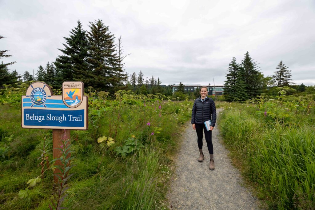 - Walk the Beluga Slough Trail: The Beluga Slough Trail is an easy 1-mile (1.6 km) loop near Homer’s Bishop’s Beach Park. We joined one of the free guided nature walks from the Alaska Maritime Wildlife Refuge Center and learned about the area’s unique flora and fauna. Side note: they have a Jr. Ranger Program, which is great if you have kids!