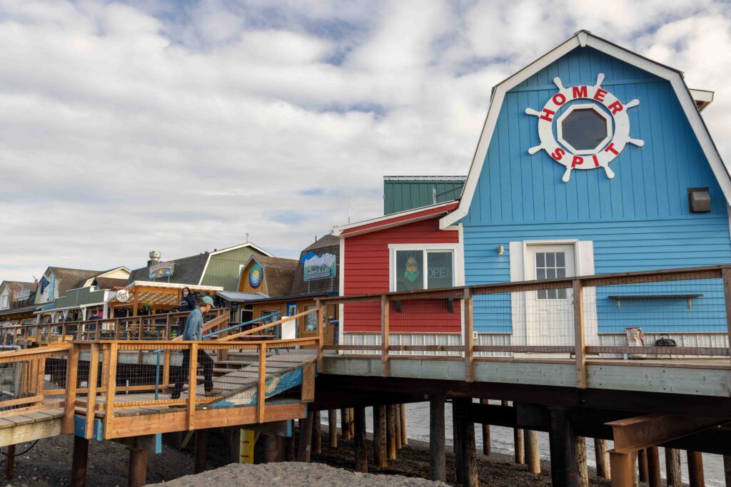 - Explore the Homer Spit: A 4.5-mile stretch into Kachemak Bay featuring shops, restaurants, art galleries, and charter tours for fishing, kayaking, and wildlife viewing. Enjoy biking or walking the Homer Spit Trail with views of Kachemak Bay State Park just across the bay. You also have to stop by the iconic Salty Dawg Saloon, a dive bar loved by locals that is impressively open year-round.