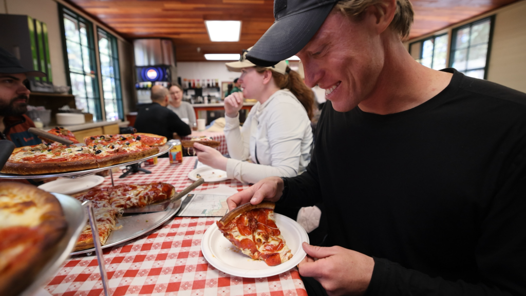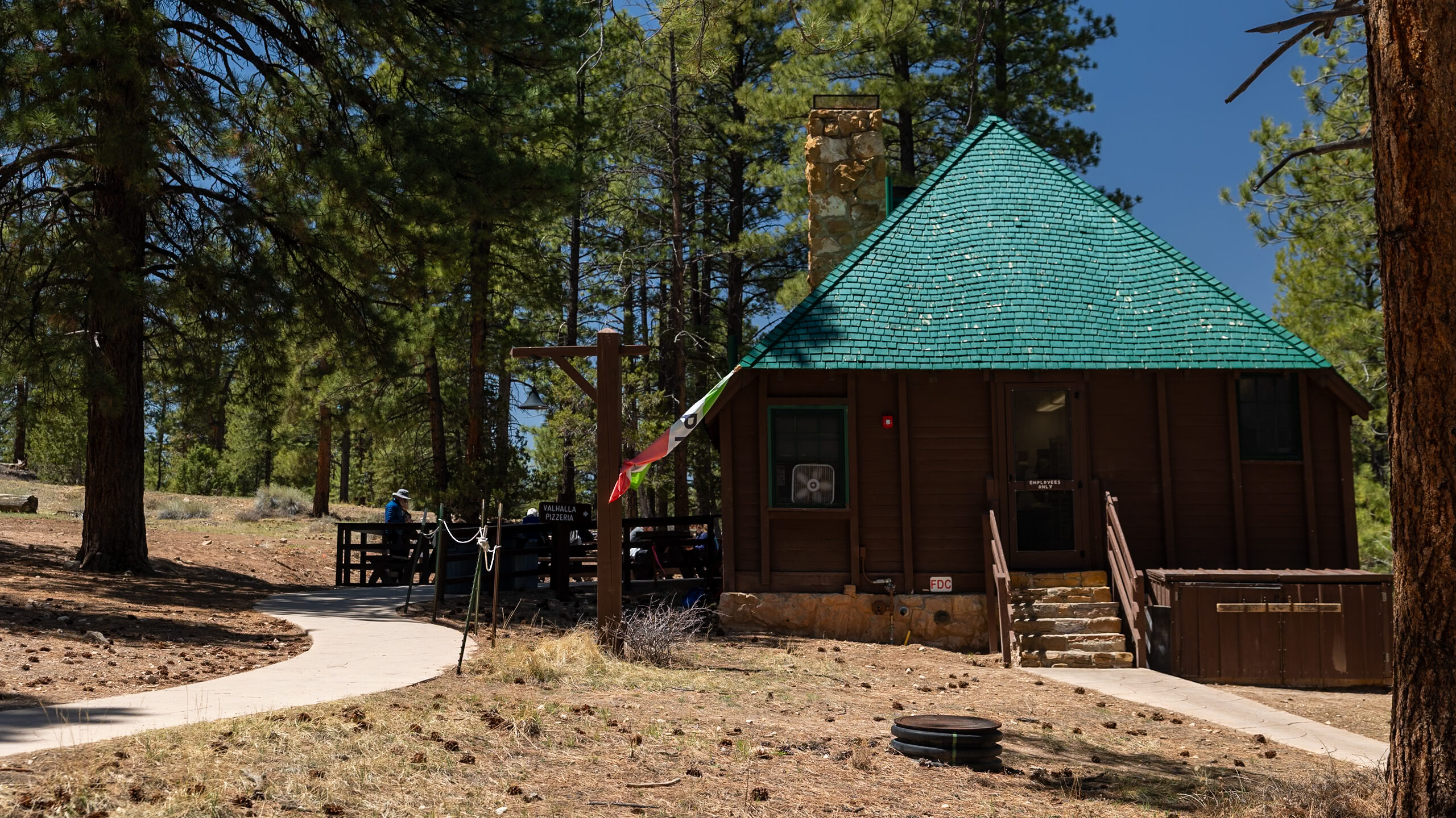 After your hoodoo-filled morning, it’s time to recharge over lunch. If you’ve packed a lunch, you can find picnic tables at spots like the Visitor Center, Sunrise Point, and Sunset Point. If you’re craving something hot, we had a great meal at Valhalla Pizzeria and Coffee Shop, near the lodge.