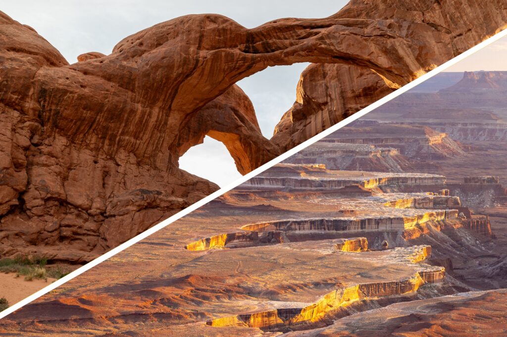 Canyonlands National Park, one of Utah’s Mighty 5, is located just outside of Moab and will absolutely wow you with its colorful sunrises and breathtaking mesa views. The park is divided into four districts—Island in the Sky, The Needles, The Maze, and the Rivers. For time’s sake, this one-day itinerary focuses on the Island in the Sky District as it’s the most popular and easily accessible.