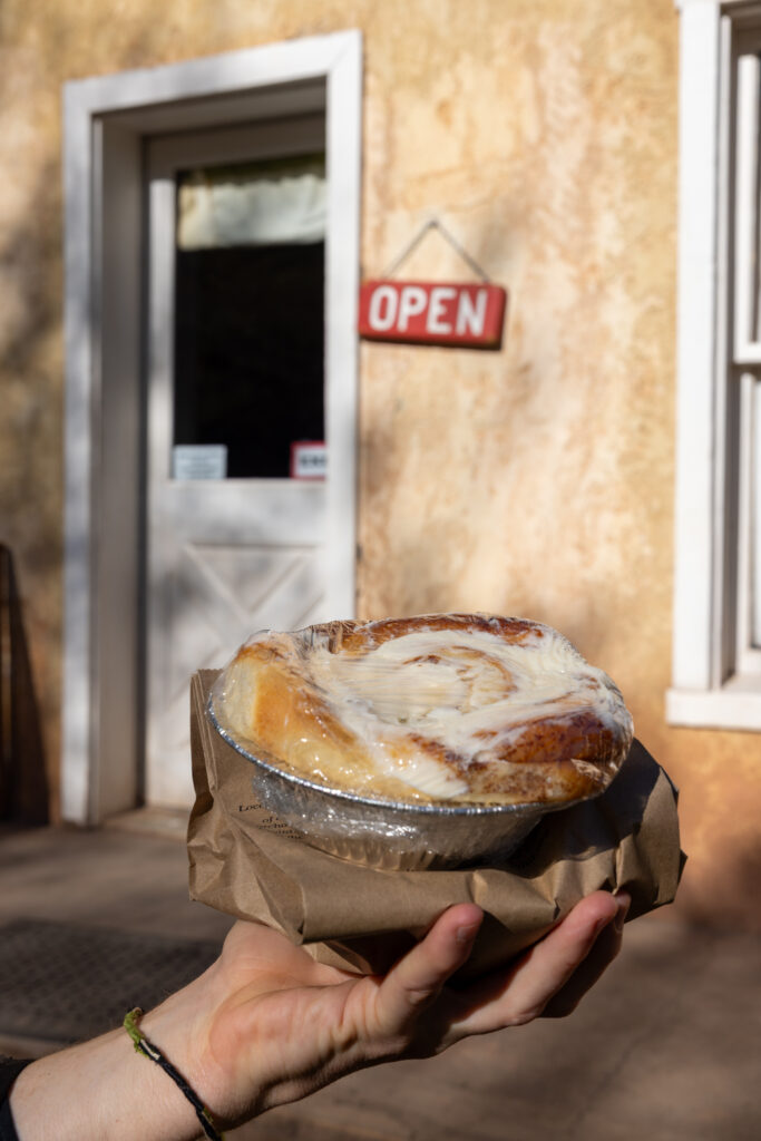 Once you’re back, head to Gifford House, a small bakery and gift shop in the cute Fruita district. Opening at 9 am, this bakery sells fresh pies, cinnamon rolls, and jams, which you can enjoy in the nearby picnic area while enjoying views of the historic orchard.